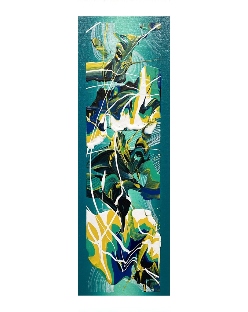 His style emphasizes color, movement, asymmetry, and balance. He approaches his work with an attitude adopted from Jazz musicians and eastern philosophy – live in the moment, create all the time, express yourself deeply and honestly, and give yourself room to not be perfect.